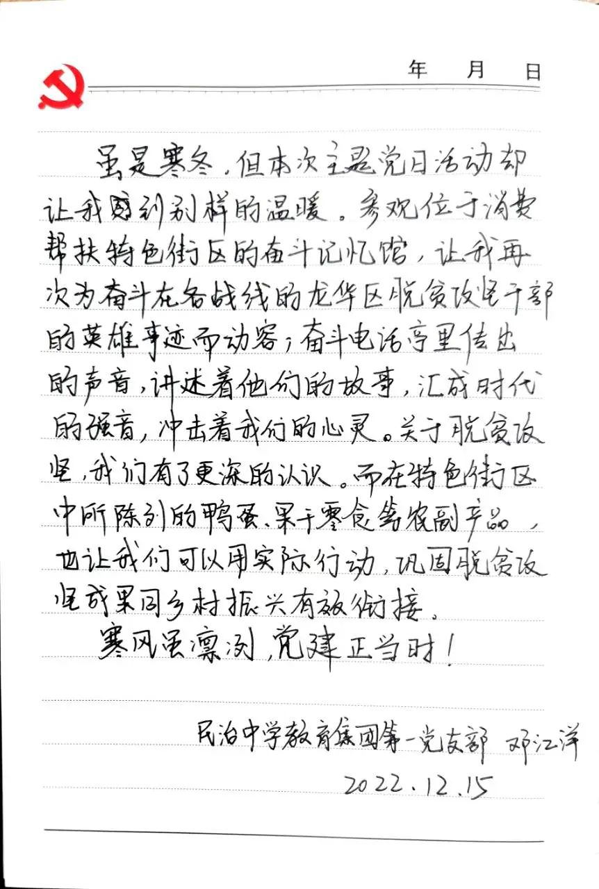 通過此次主題黨日活動,不僅豐富了我校黨內組織生活,增強了我校黨支部與民治中學教育集團第一黨支部之間的交流學習,還加強了黨員黨性錘煉,以實際行動支持鄉村振興,鼓勵廣大黨員干部不斷提高自身,為鄉村振興盡一份力!
