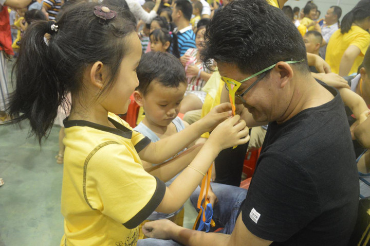 “小小設計師”們還為辛勞的爸爸們制作了一個與眾不同,獨一無二的領結
