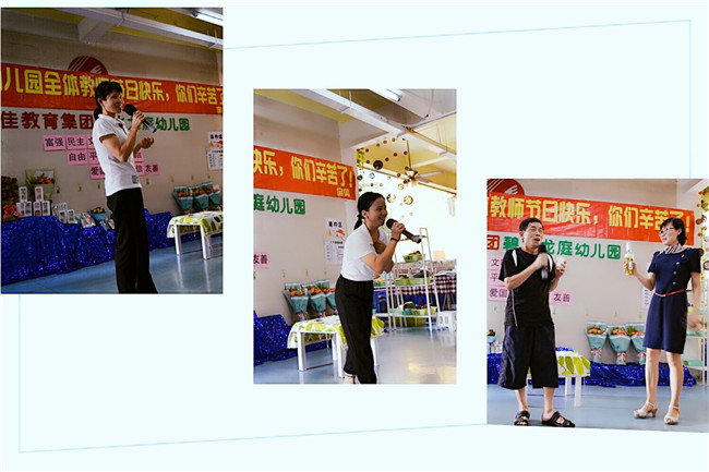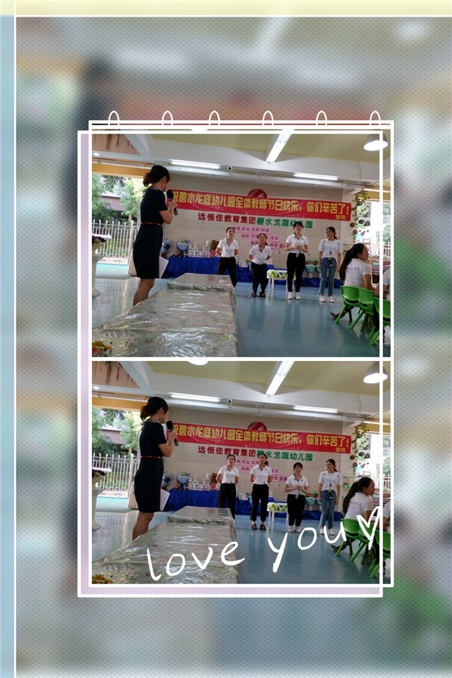 春去秋來,一年一度的教師節(jié)即將來臨,為了積極響應(yīng)集團(tuán)提出的“有愿景、重文化、懂浪漫”教師團(tuán)隊(duì)建設(shè)目標(biāo),讓全園教職工們度過一個(gè)開心、難忘又有意義的教師節(jié),提升教師的職業(yè)幸福感和團(tuán)隊(duì)的凝聚力,我園在2017年9月8日舉行碧水龍庭幼兒園教師節(jié)慶祝活動(dòng)!第一篇章:有愿景,佳人同樂促情誼