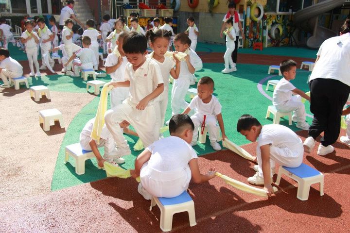 幼兒早操是幼兒園體育活動的重要內(nèi)容之一,它不僅是鍛煉幼兒身體、促進(jìn)身心協(xié)調(diào)發(fā)展的一種運動形式,也是深受幼兒喜歡的體育活動之一。幼兒天生好動、好學(xué)、好模仿,幼兒操節(jié)正是以各種身體動作的練習(xí)為基本內(nèi)容,既可以徒手做,也可以利用器械、道具等器材做,形式多樣,內(nèi)容豐富,深得幼兒喜歡!2017年9月28日下午三點,興茂幼兒園進(jìn)行了幼兒秋季早操觀摩展示活動,讓我們走進(jìn)興茂幼兒園的運動賽場,一睹孩子和老師們的風(fēng)采!