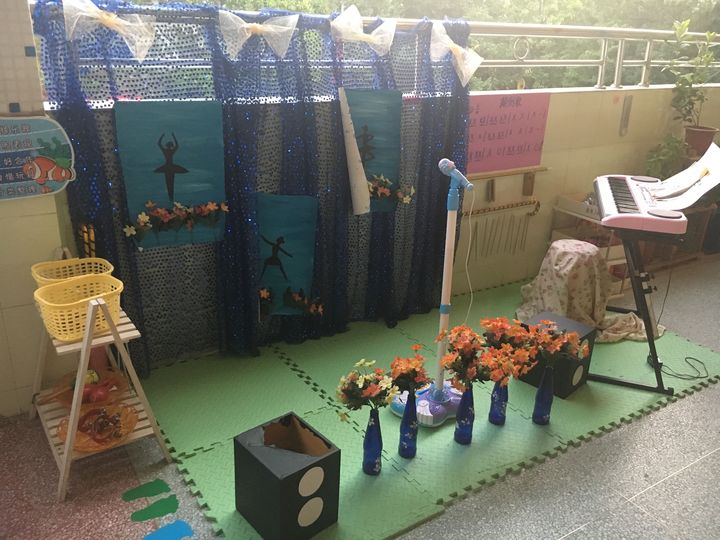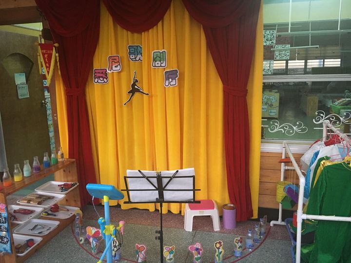 音樂區角的開設是音樂集體教學活動的延伸,是與音樂集體教學活動并重,是相輔相成的,對于幼兒音樂素養的提高,節奏感、韻律感、美感的把握是不可缺失的重要組成部分。音樂材料合理搭配要充分的結合幼兒的心理發展特點,結合年齡段的興趣偏愛進行創設。好的音樂區材料投放可以更好的促進幼兒幼兒對音樂區材料的運用能力。與此同時需要充分發揮幼兒的主觀能動性,讓幼兒大膽的嘗試,積極主動建構知識體系,表達出自己對音樂的理解和體悟,感受音樂的美的享受。本次音樂區創設,老師們主要抓住以下四個方面:第一,環境創設:簡單的絨毯、彩條就可以輕松裝飾成一個溫馨的舞臺;第二,樂器:據幼兒的心理特點和行為規律投放樂器,應該有計劃有目的的分批進行投放,這樣樂器投放才更有效;第三,道具:主要包括服裝、臉譜等。利用這些道具可以吸引幼兒的注意力,并激發其對音樂的興趣 ;第四,基本的設備:主要是錄音、磁帶等可以輔助于音樂區活動的有效開展。