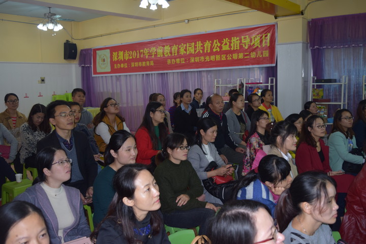 時間: 2017-11-20 作者:yuanhengjia 閱讀次數: 2439親子閱讀在提高幼兒語言、審美、想象等諸多能力的同進,還在塑造幼兒健全人格、豐富幼兒情感體驗、培養幼兒良好習慣、展開生命教育方面發揮著重要作用。對人的一生來說,人格的養成是從小塑造并基本定型的,且定型后很難糾正。因此學前是兒童人格塑造的奠基石,是進行品德教育的重要時期,也是良好心理品質形成的最佳時期。閱讀優秀繪本,是會激發并促使他們向書中優秀人物學習,在生活中會不自覺以其為榜樣并努力向其靠擾。依托深圳市2017年學前教育家園共育公益指導項目活動,2017年11月20日下午,為多元集聚社會資源共同推動科學保教、家園共育、提升學前教育質量,提高學前兒童家長的科學育兒能力,在光明新區公明第二幼兒園開展了講座——親子閱讀之開啟幸福童年的密碼。