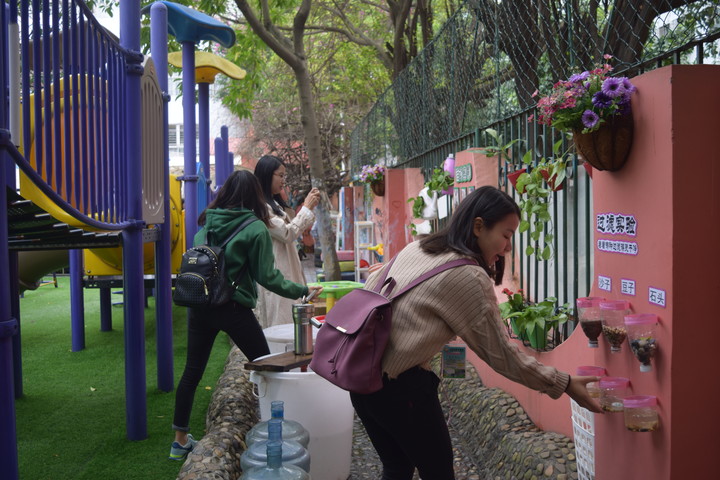 首先公明二幼李晶園長對來訪的園長及老師們介紹了幼兒園的創辦理念、園本課程,分享了幼兒園室內外環境創設的經驗,重點突出班級晨談墻、植物角、音樂區以及戶外游戲場的創設,隨后,觀摩的園長老師們也走進了班級,用手機拍下晨談墻環境、區域的操作材料、主題墻的創設、幼兒表征作品、廢舊物品的再次利用……園長老師們對二幼環境給予了充分的肯定,同時我們也會對反饋表中提出的建議認真思考,結合幼兒園的實際情況加以改善。
