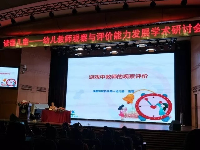 下午,成都軍區(qū)機關(guān)第一幼兒園園長謝蓉、杭州市京都學(xué)前教育集團園長吳春紅東進行了《游戲中教師的觀察與評價》的主題講座。