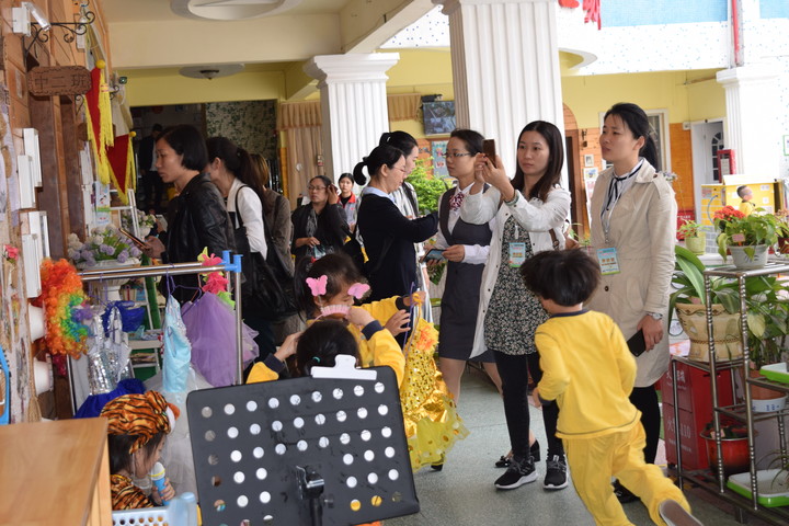 早操展示中,孩子們天真、稚氣的笑容讓園長們感受到了孩子參與活動的積極性非常高;班級環境整體規劃、晨談墻、區域、作品表征、植物角和成長檔案等處處體現了幼兒園“以幼兒為本”的教育觀念,園長們都認真地觀察孩子的每一個活動,細細地關注每一個角落,用手機拍下認為有參觀價值的畫面。