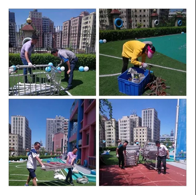 三十多度的高溫下,家長朋友們不畏酷暑,在為舞臺搭建忙碌著!