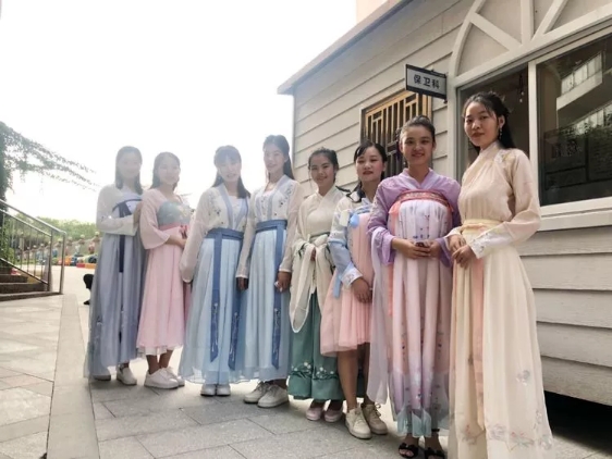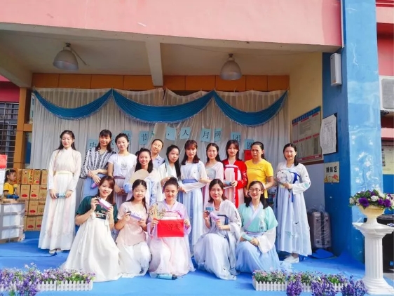 今日碧水園老師們身穿漢族霓裳,共同描繪漢唐盛世的優(yōu)美畫(huà)卷。