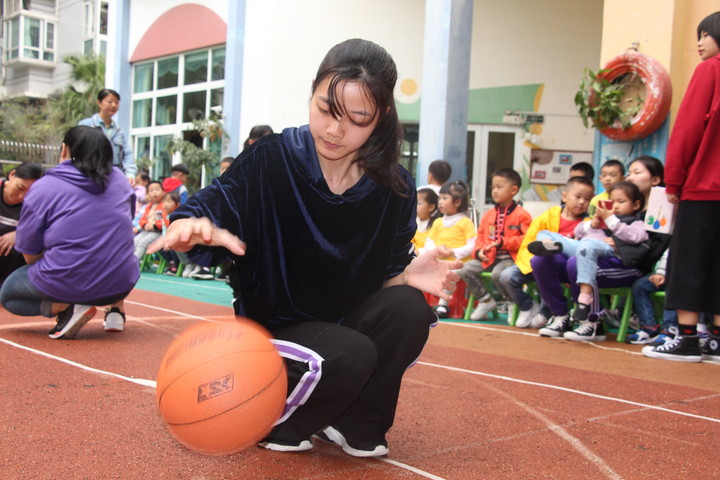 (伴隨著此起彼伏的拍球聲,每個(gè)人都全身心投入力爭第一。)