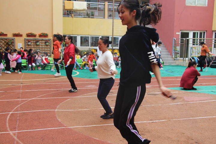 接下來是跳繩比賽,看老師們一個(gè)個(gè)身輕如燕,那揮舞著的跳繩的樣子格外認(rèn)真。