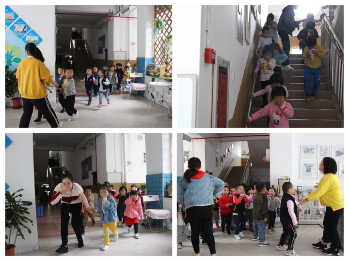 星期四中午11點50許,老師們正在組織孩子們飯后散步活動,忽然聽到緊急的警報聲,各班教師迅速按緊急預案的疏散線路帶領幼兒拿起濕毛巾,捂住口鼻,貓著身子,分兩道樓梯迅速且有序下樓。