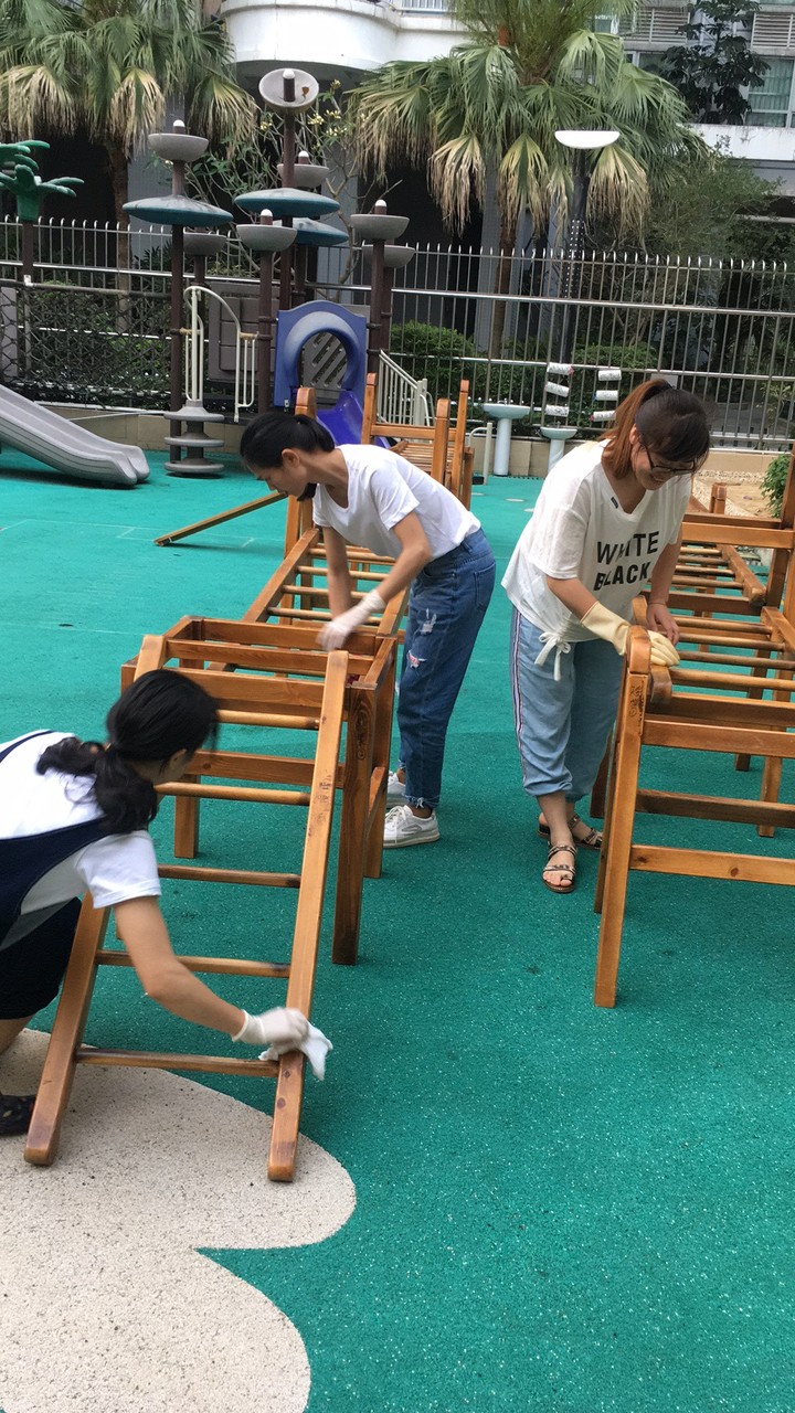 春季萬物復蘇,氣溫漸暖,多種病毒和細菌會大量繁殖,是各種傳染性疾病高發季節,幼兒的抵抗力弱,極易感染疾病,為了給幼兒提供一個安全、衛生、舒適、整潔的校園環境,切實做好幼兒園保育工作,提高師生及家長對疾病防控的意識,我園開展了衛生大掃除活動。在郭主任和陳醫生的帶領下,老師們團結協作,對全園內外環境進行了全面徹底的清洗情毒。
