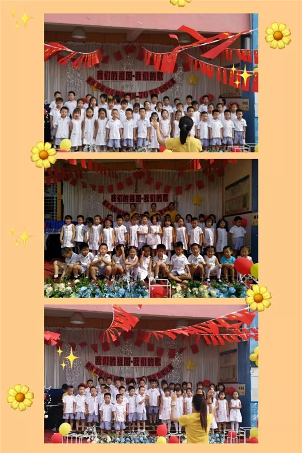 從開始的哭鬧到如今能上臺(tái)用他們嘹亮的歌聲為祖國媽媽慶生,他們真的很棒!一首首大家耳熟能詳?shù)母枨?jīng)過孩子們的重新演繹,被賦予了新的“生命力”。孩子們以班級(jí)為單位,用他們最質(zhì)樸和純真的“語言”詮釋了自己對(duì)祖國的熱愛之情。演唱中他們個(gè)個(gè)著裝整齊,精神抖擻,以飽滿的熱情,嘹亮的歌聲掀起了一個(gè)又一個(gè)的高潮。