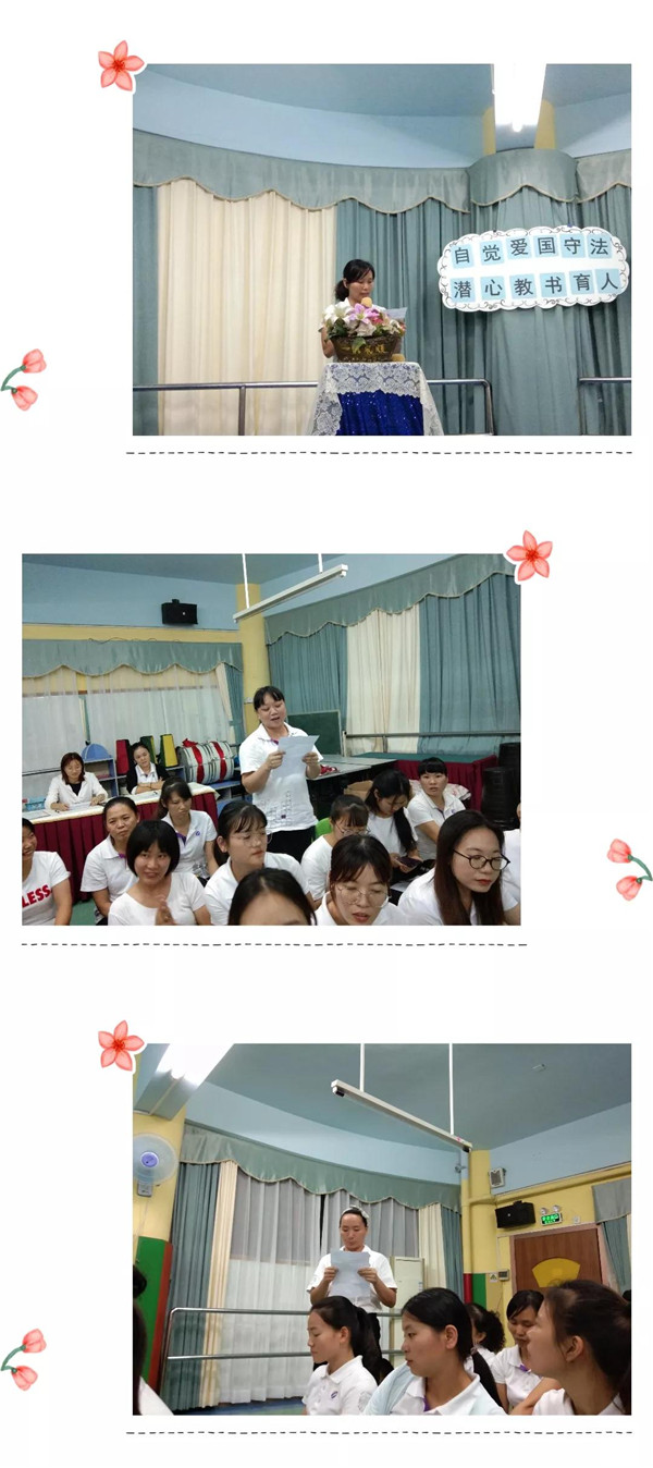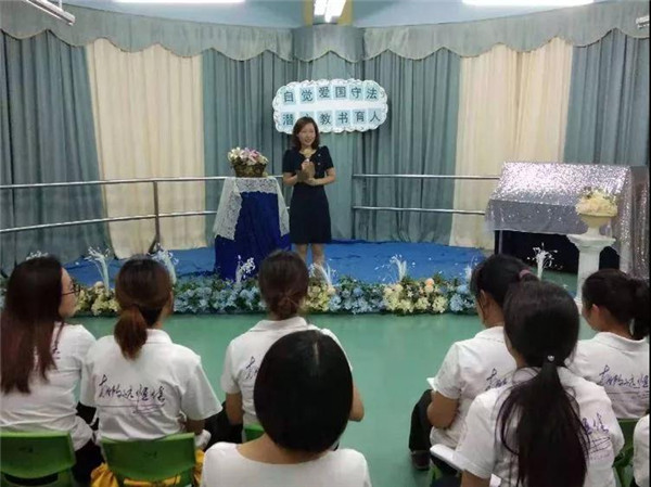教師是太陽(yáng)底下最光輝的職業(yè),是人類靈魂的工程師,是社會(huì)的規(guī)范、是人類的楷模。而作為一名幼兒教師這個(gè)神圣而又偉大的職業(yè),更是需要樹立以德育人、愛國(guó)守法的良好師德師風(fēng),為此碧水龍庭幼兒園于2019年10月28日晚上開展了“自覺愛國(guó)守法,潛心教書育人”的演講比賽活動(dòng)。現(xiàn)在就讓我們跟著主持人一起去聆聽那美好的故事吧!