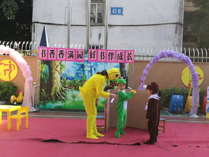 2016年11月28日,在遠恒佳花園幼兒園大操場,中三班的小朋友和他們的爸爸媽媽為大家獻上了親子童話劇《弗洛格找寶藏》。弗洛格和小熊去挖寶藏,他們先挖了個洞,洞越挖越深,結果被困在里面了。小熊急哭了,弗洛格想出了一個唱歌的辦法來安慰小熊。直到第二天,鴨子出來散步時,才發(fā)現了他們。最后鴨子去找老鼠幫忙,老鼠很聰明,搬來了一架梯子,救出了弗洛格和小熊。