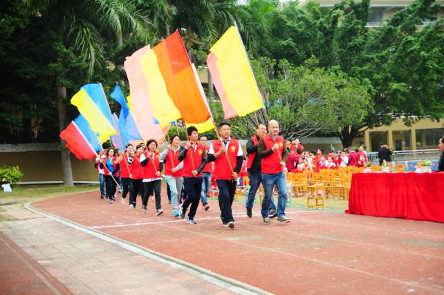 鮮艷的紅旗就像火紅太陽,散發出熱烈的光芒,照亮運動場上的每個角落。