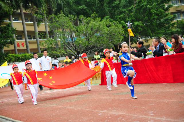 3. 升旗儀式很壯觀,每個孩子唱起國歌,很有感染力;運動會充分體現了合作、分享、健康、快樂的精神。也充分體現了以幼兒為本的精神,充分考慮幼兒的年齡特點,讓小班的孩子先進場。