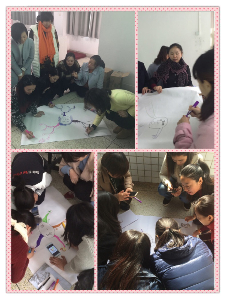 12月31日是我們在“苗圃工程”學習活動的最后一天,優雅睿智的黃娟教授給我們分享了《思維可視化工具在幼兒教育中的應用》。思維導圖又叫心智圖,是表達發射性思維的有效的圖形思維工具 ,它簡單卻又極其有效,是一種非常強的記錄思維工具。思維導圖充分運用左右腦的機能,利用記憶、閱讀、思維的規律,協助人們在科學與藝術、邏輯與想象之間平衡發展,從而開啟人類大腦的無限潛能。她結合幼兒園孩子的學習品質給我們列舉了很多適合幼兒園教學的思維導圖!讓大家茅塞頓開!她還分享了思維導圖的8大圖示:圓圈圖 氣泡圖 雙氣泡圖 樹形圖 括號圖 流程圖 復流程圖、橋形圖。最后黃娟教授讓六組老師自選一個題目通過思維導圖的形式展現出來!課堂氛圍馬上活躍起來!各組教師積極參與討論和繪圖中,十幾分鐘的時間,一張張各具特色的思維導圖呈現出來了!黃娟教授對幼兒園教師的專業素養給予很高的評價:幼兒教師不愧是彈、唱、跳、繪畫樣樣精通的專業技術人員!