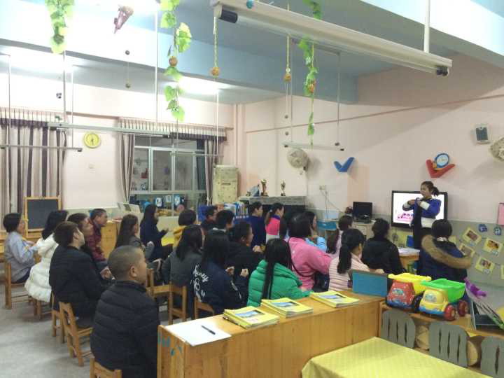 教師講解本學期月工作重點以及對孩子們在幼兒園在園表現狀況進行點評與分析。