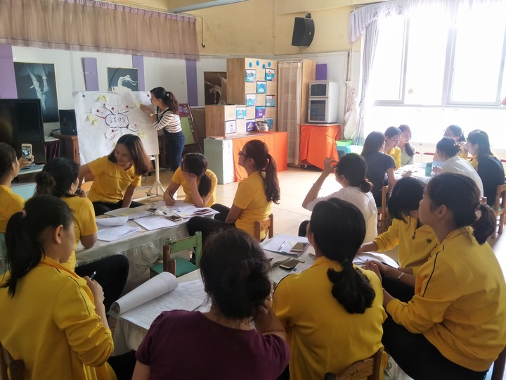 在觀摩活動中,老師們把自己對創(chuàng)意音樂欣賞的理解放在了課堂實踐中。4月19日,集團幼教中心萬老師對我園音樂活動進行觀摩后,做出了點評,對每一個老師做出具體的指導。那么,具體該怎樣上好一節(jié)創(chuàng)意欣賞活動呢?欣賞是以“聽”為主,用身體的各個感官去感受音樂,再用肢體動作、游戲等多種形式來表現音樂。而且在課堂上老師要做到循序漸進,從細到大。那么,欣賞音樂是欣賞音樂里的什么?欣賞音樂可以是欣賞音樂里的情緒、節(jié)奏、民族風、區(qū)式結構以及音樂里面特別的聲音。在萬老師幽默有趣的點評下,讓我們把創(chuàng)意欣賞活動理解得更加透徹,從而能夠創(chuàng)新立意。觀摩教研是讓老師們能快速成長的主要途徑之一,只有通過不斷地思考、實踐、反思、再實踐,才能讓創(chuàng)意音樂活動的水平提高。