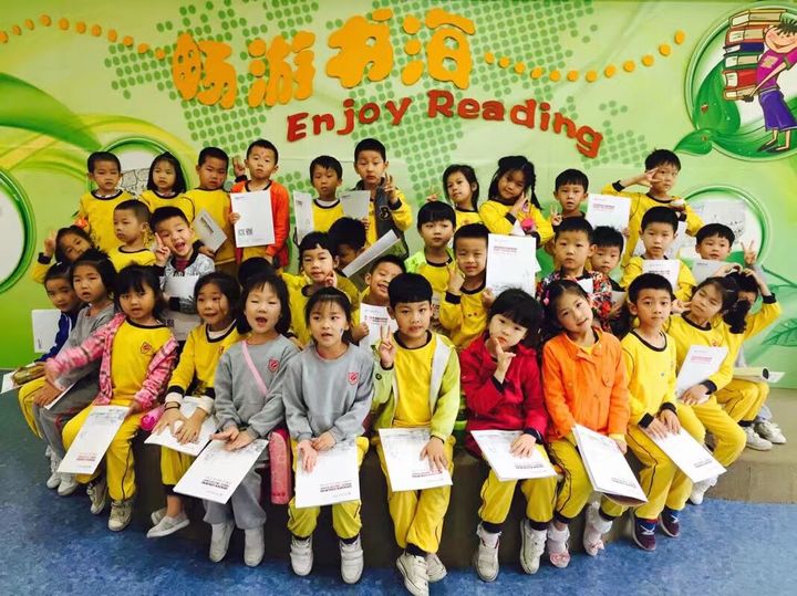 坐在學(xué)校統(tǒng)一安排的大巴車里,孩子們都很興奮,欣賞著沿途的風(fēng)景,期待著快些到學(xué)校。很快,汽車駛?cè)肓斯髦杏⑽膶W(xué)校的大門,學(xué)校廣闊的操場、高大的教學(xué)樓、整潔的環(huán)境無不吸引著他們的眼球。孩子們的到來受到了小學(xué)老師的熱情歡迎,在老師的帶領(lǐng)下,孩子們首先來到哥哥姐姐們上課的課室,感受了一下小學(xué)上課的氛圍,英語老師用流暢的英文跟孩子們互動的,通過各種游戲讓孩子學(xué)會動物的單詞,小家伙們聽得可認真了,仿佛那一刻自己就是一名小學(xué)生。接著孩子們排著整齊的隊伍參觀了圖書館,孩子們被里面的設(shè)施吸引了,圖書館里為不同年齡孩子們準備了不同的書籍,我們在圖書館進行了班級的合照,孩子們非常的配合!