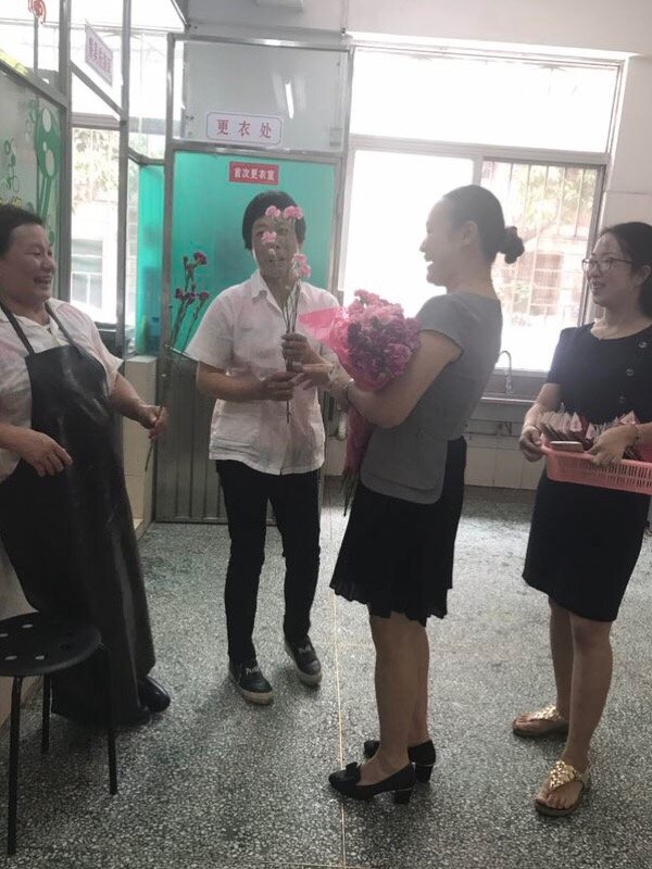 世界上還有一種媽媽,那就是幼師。孩子們有媽媽,老師也有媽媽,她們可能還沒有成家,卻是三十多個孩子的媽媽,正當老師們都忙著協助孩子們完成給媽媽的作品時,貼心的園長媽媽也悄悄地給大家帶來了驚喜~