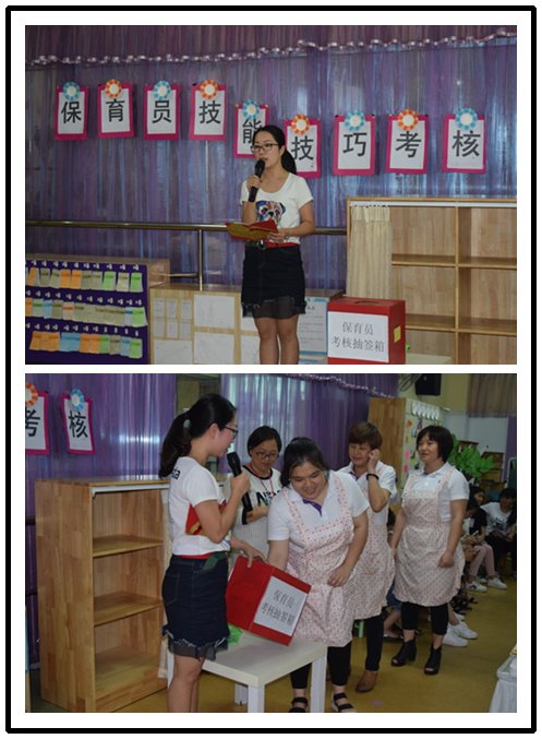 筆試部分:考試試卷為AB卷閉卷考試在技能技巧考核的實操部分,我們邀請了年級家委代表及園領導作為評委。