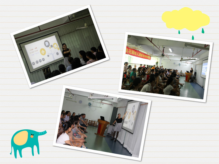 講座開始前,彭園長十分巧妙地通過一個小游戲來吸引家長,成功地將家長的注意力轉移到講座上來。