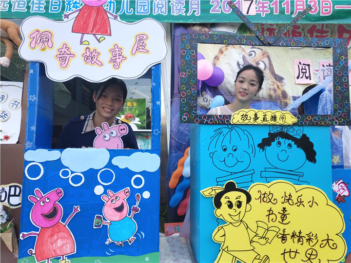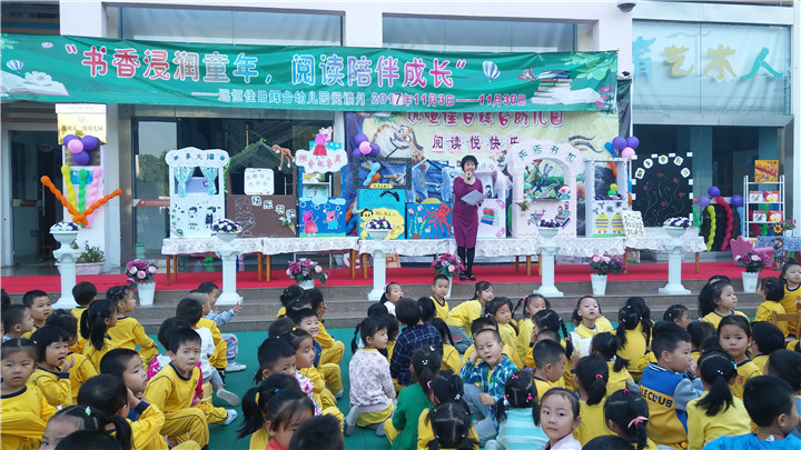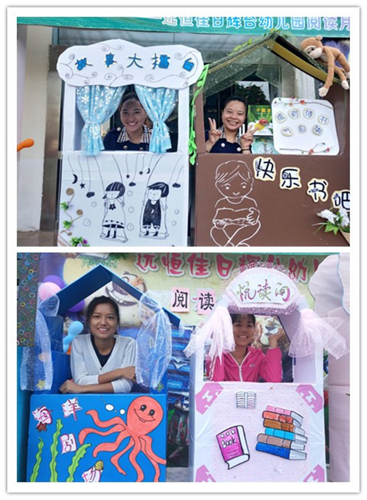 2.在濃郁的書香氛圍中,老師還特別為小朋友制作了故事小屋,還有響亮的閱讀月活動口號