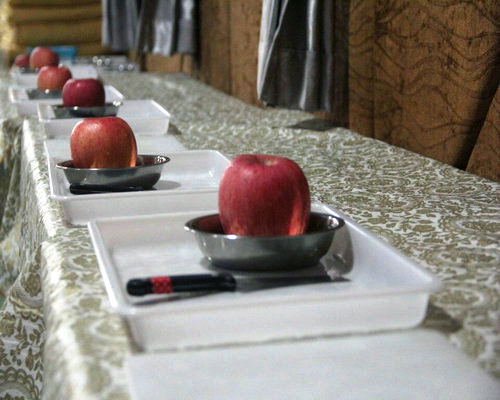 在這一個環節中,老師們做到了:皮兒薄、分塊均勻、擺放藝術。