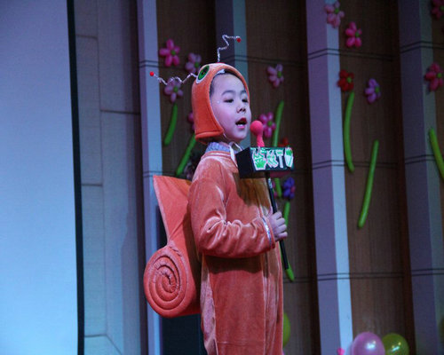小朋友們你們有夢想嗎?有....我想當歌唱家,我想當科學家,我想當舞蹈家.......看哪里來了一只小青蟲,它也有自己的夢想。童話劇表演《小青蟲的夢》。