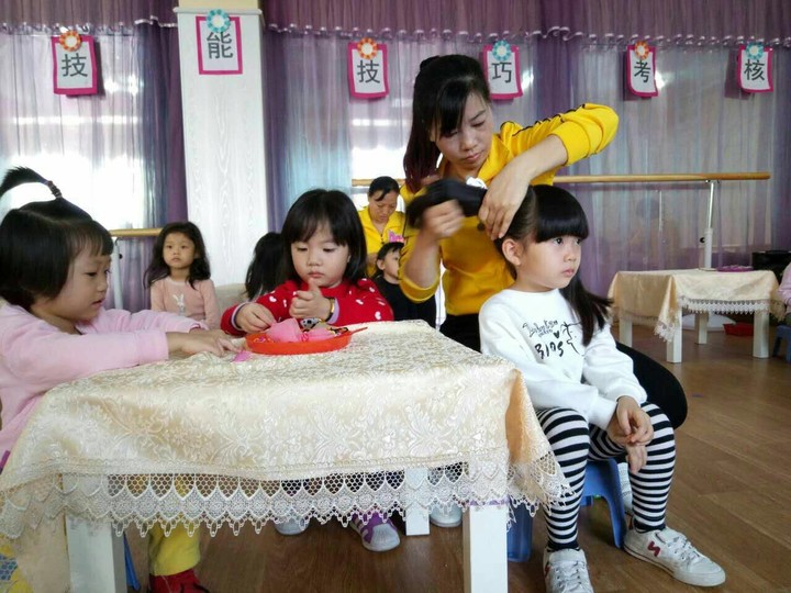 到了最后的扎頭發了,我們的保育老師扎頭發可是有要求的,要發型整潔、整齊、松緊適中,能根據幼兒頭發長度編扎適合的發型,發型時尚有新穎,并且能規定在6分鐘內幫三個寶寶扎完頭發,這次活動真是讓我們的家委們大開眼界。我們來好好瞧瞧我們二幼的保育老師有多厲害,她們不單單能在規定時間內完成,而且扎得很好看呢!一個個成果在6分鐘完成,展示在我們面前的是一道靚麗的風景線,可見我們保育老師的工作效率真是又棒又快,真是不簡單!