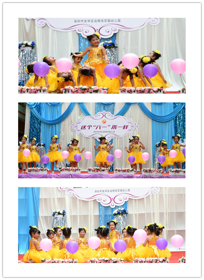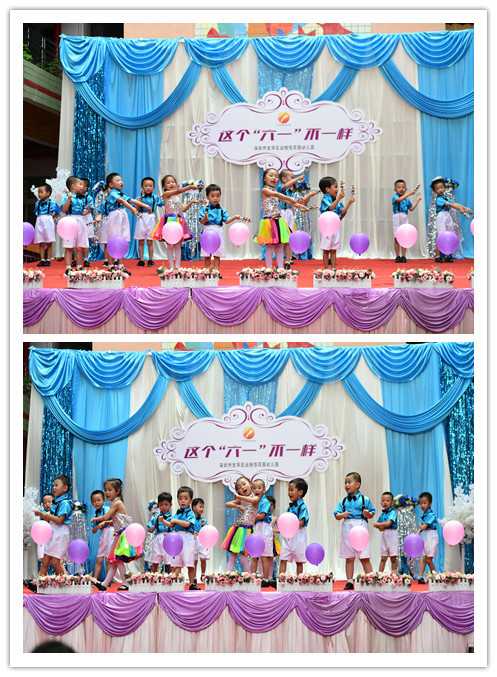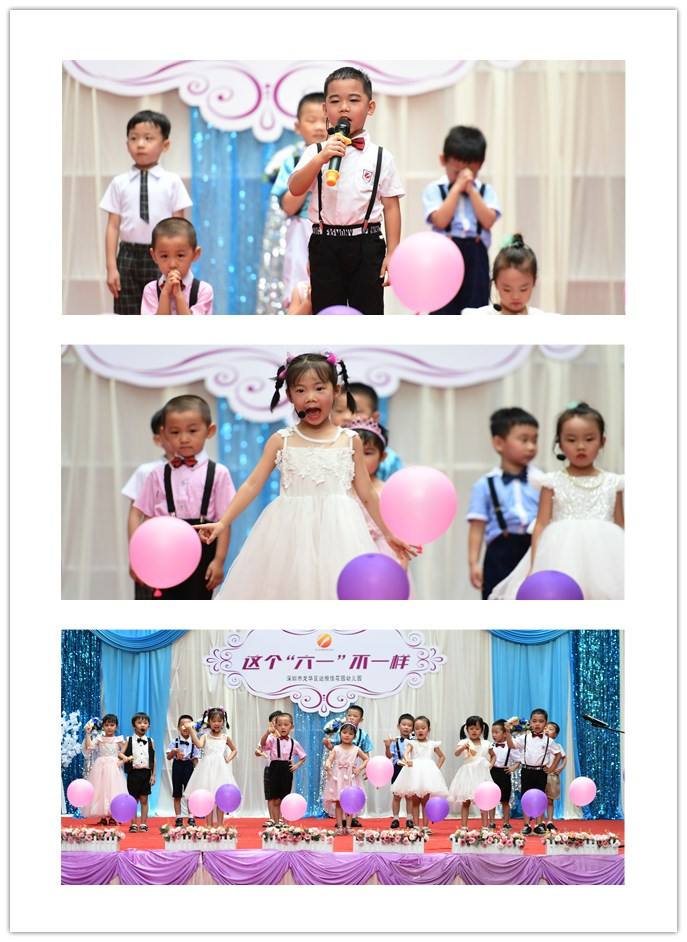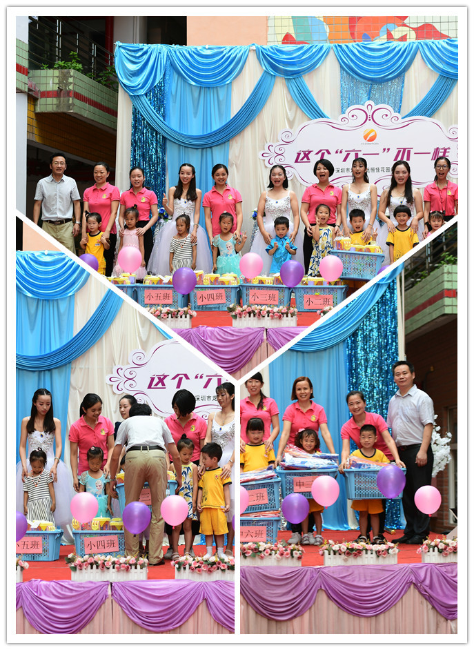 本次六一不一樣,小朋友們不僅是小演員,也是小觀眾。小朋友們、家長和教師都身著盛裝,展示不一樣的自我,場面熱鬧紛呈。教師的情景舞蹈《梔子花開》,讓觀眾在南方炎熱的天氣里感受到了淡淡花香,如癡如醉。幼兒舞蹈《聰明寶貝》、《可愛娃娃》、《我可喜歡你》,寶貝們用自己的活潑可愛的舞姿展示出一個個活潑、調皮、聰明、可愛的小寶貝。幼兒英語串燒,寶貝們年齡雖小,卻毫不遜色,在唱英文歌曲的同時,還展示出了自己對英文的喜愛,贏得觀眾的陣陣陣陣掌聲與歡笑。中班小主持《媽媽的目光》、《親愛的小孩》,調皮搗蛋的小家伙們分秒變身為落落大方的小主持,用自己最獨特的嗓音,表達著自己心中對媽媽的愛。在本次六一匯演的最后,集團領導還為寶貝們贈送了六一兒童節禮物。六一匯演結束后,家長們陪同小朋友回到教室,進行“水果拼盤比賽”,一起感受快樂的親子時光與享受美味多樣的水果。