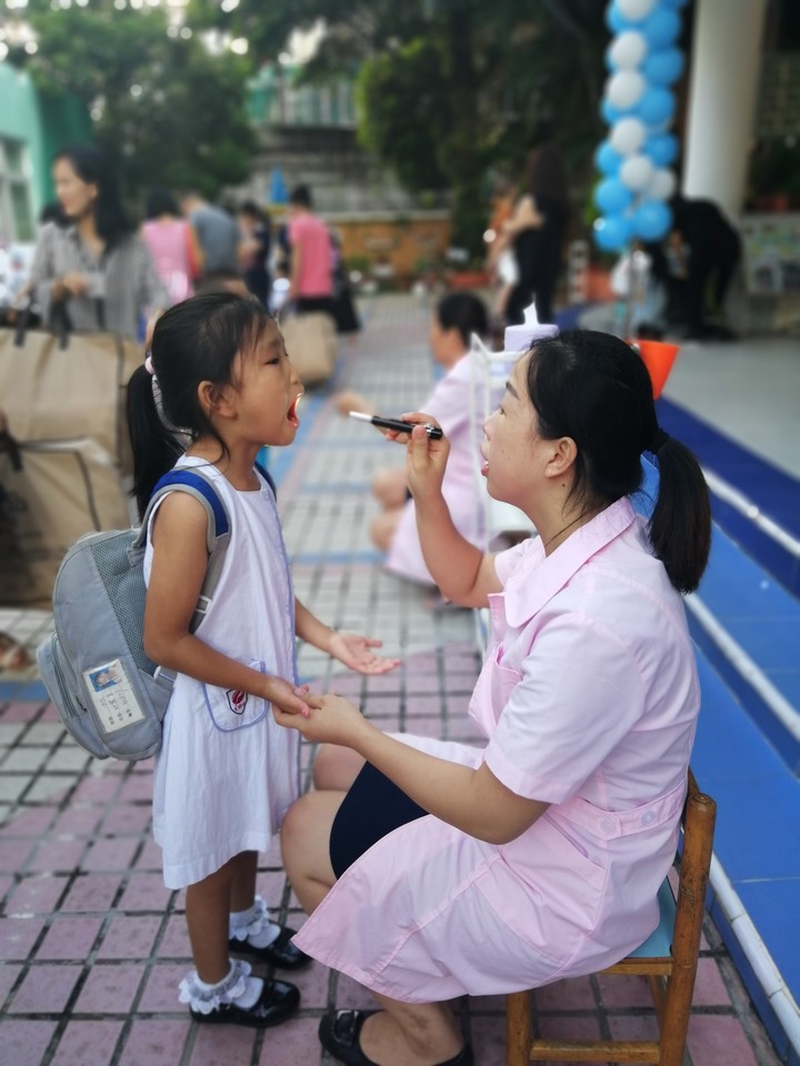 園長媽媽帶著老師們早早地在幼兒園門口熱情地歡迎寶貝們回園;保健醫(yī)生為孩子們細心地做好晨間檢查;“Welcome back to kindergarten”英語老師也在用英語歡迎孩子們回園;最讓孩子們欣喜的是米妮人偶在校門口歡迎大家回園。