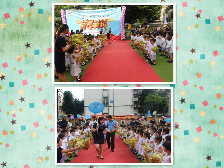 本學期花園幼兒園迎來了200多名新朋友,為了表示對新朋友的加入,大班的哥哥姐姐為新生送上自己親手做的禮物,歡迎新生加入我們的大家庭。、接下來是莊嚴的升旗儀式,來自大班的哥哥姐姐們踏著整齊的步伐護旗入場,老師和孩子們肅然起敬、目不轉睛地注視著冉冉升起的國旗。為了迎接新朋友的到來,大班舞蹈班的孩子們準備了一個迎新節(jié)目--《讓愛住我家》。讓愛住我家,讓愛住在我們的花園幼兒園。最后,園長媽媽致辭,園長媽媽的諄諄教誨,給我們指明了新學期的奮斗目標和努力方向,真是催人奮進、讓我們備受鼓舞。