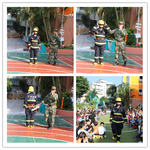 龍華街道消防中隊的戰士們趁著此次消防演習的機會為孩子們講解火場自救與逃生技能,讓孩子們零距離接觸了消防員叔叔,懂得了許多消防知識。