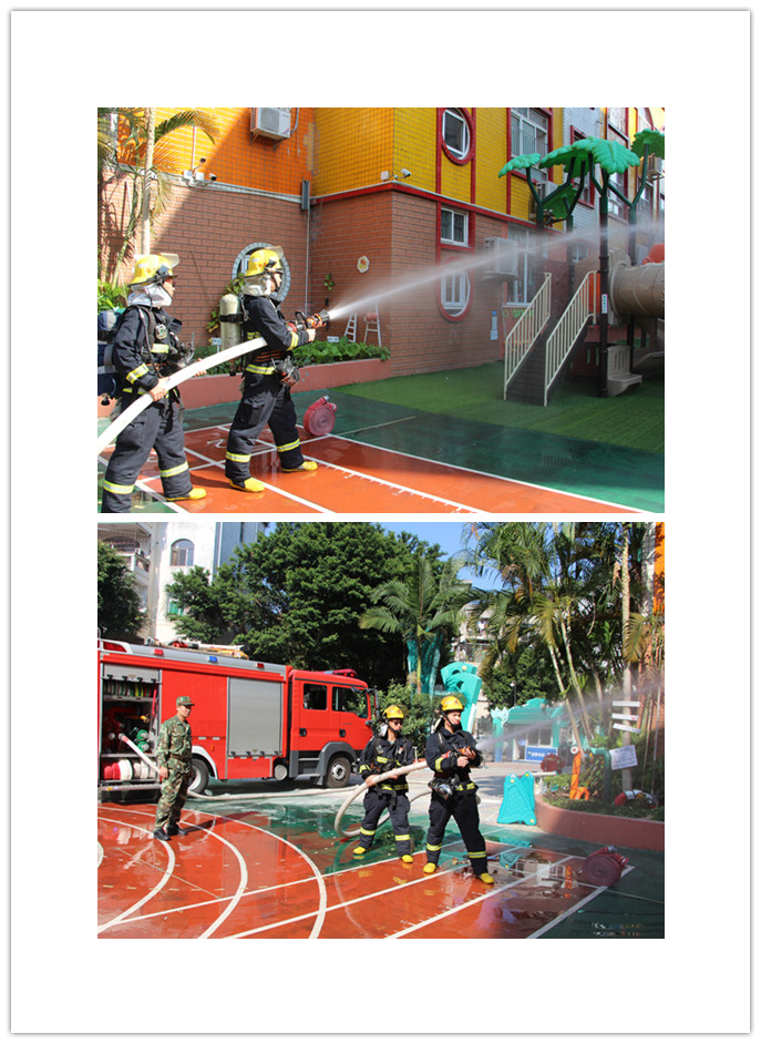 根據小朋友具體形象思維的特點,消防戰士重點向幼兒講解消防安全小常識。引導孩子認識消防器材,教孩子如何使用滅火器、如何彎腰用濕毛巾捂住口鼻前進等,旨在通過一系列的活動讓幼兒學會火災發生時如何保護自己。 “遇到火災不哭鬧,捂住口鼻彎下腰。蹲下身子慢慢跑,保護生命最重要。”通過消防安全教育,孩子們不僅熟練掌握了消防兒歌,而且學會了火災逃生辦法,能夠聽從老師指揮,快速撤到安全地點。