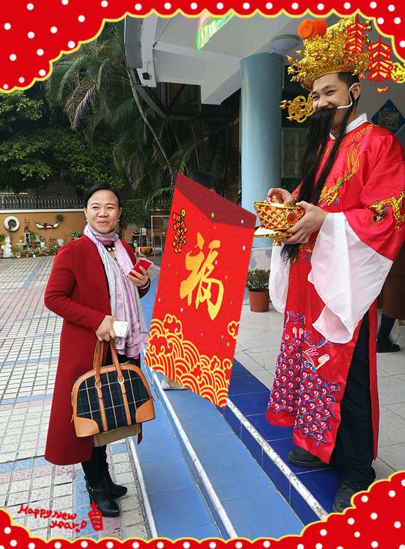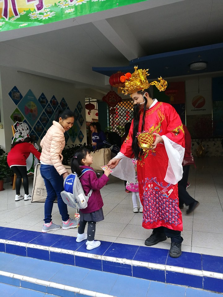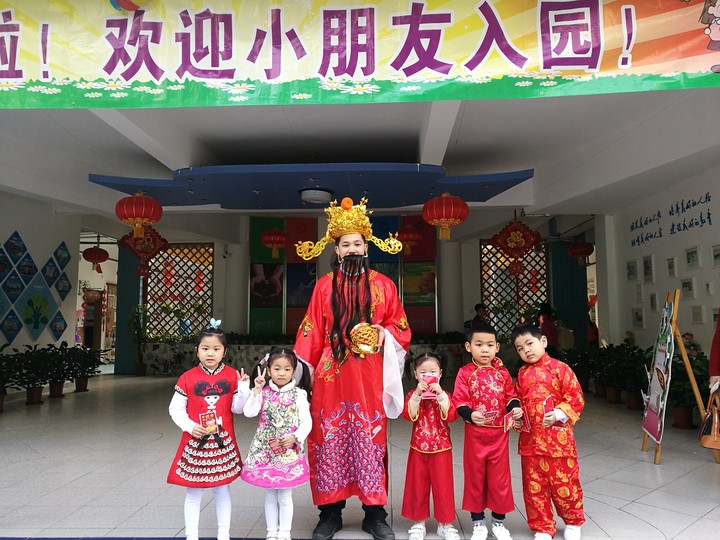 園長媽媽帶著老師們也早早地在幼兒園門口熱情地歡迎寶貝們回園;保健醫生為孩子們細心地做好晨間檢查;“Welcome back to kindergarten”英語老師也在用英語歡迎孩子們回園;最讓孩子們欣喜的是財神爺帶著金童玉女在校門口迎接大家,并送上裝有糖果的利是紅包,給新年第一天回園的孩子們帶來了一天美好的心情。