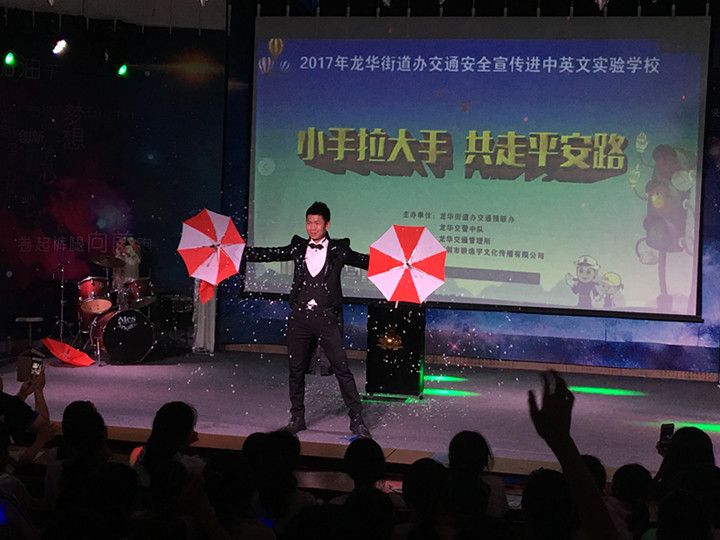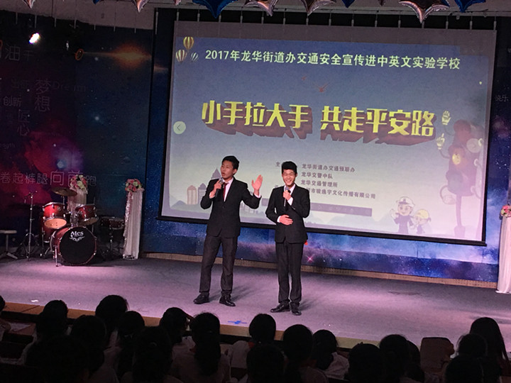 深圳市駿逸宇文化傳播有限公司通過小蘋果版的交通歌曲、小品、魔術、相聲、雙簧等豐富多彩的節目宣傳了交通安全知識,并在現場向同學們發放了交通安全宣傳手冊,提醒廣大同學時刻注意交通安全,遵守交通信號燈,不在馬路上追逐打鬧,不乘坐超員車輛,杜絕交通陋習,并倡導各位同學做一名文明的交通參與者,讓同學們從小樹立遵章守法、安全出行的理念。活動現場還通過有獎問答來鞏固同學們對交通安全知識的掌握,氛圍熱烈而有序。