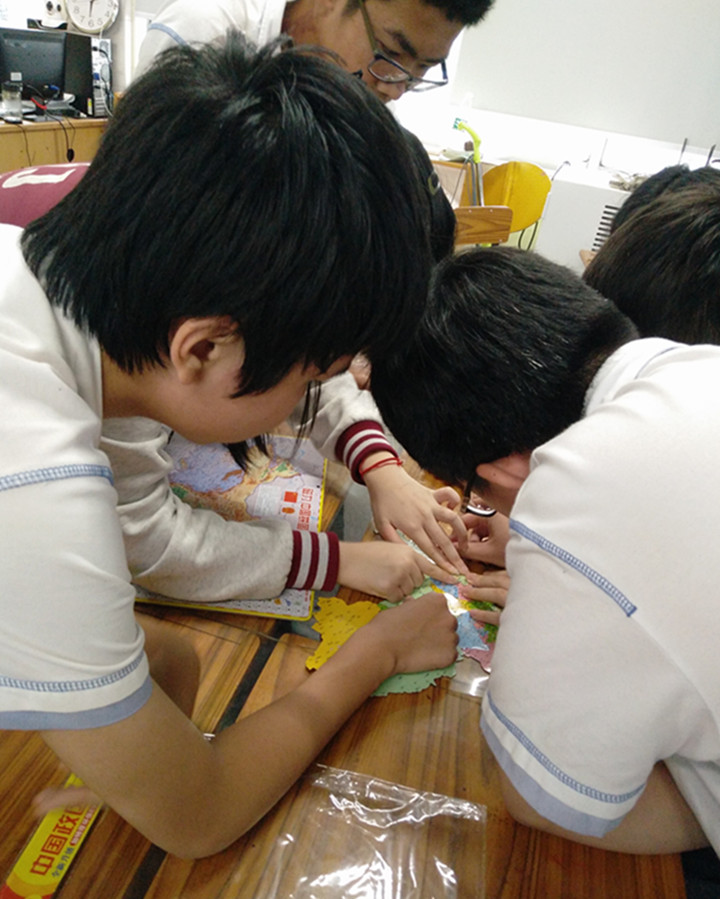 此次比賽考察了學生識圖、記圖、用圖的能力,只給學生們看一次的機會,之后馬上打亂地圖,要求學生在一定時間內靠自己的記憶以及平時地圖知識的積累來拼出地圖。如果沒有日常學習中的積累,是很難在全體參賽者中脫穎而出的。