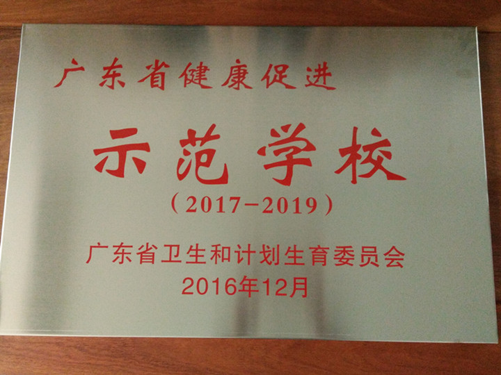 由于我校在食堂安全及衛生管理方面做得扎實,安全有保障,在2015年03月,我校還被評為“廣東省食品安全示范學校食堂”,在2016年12月,我校被評為“廣東省健康促進示范學校(2017-2019)”。