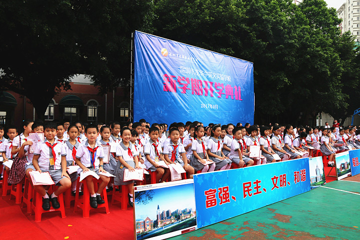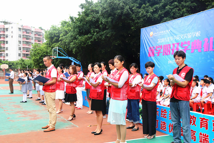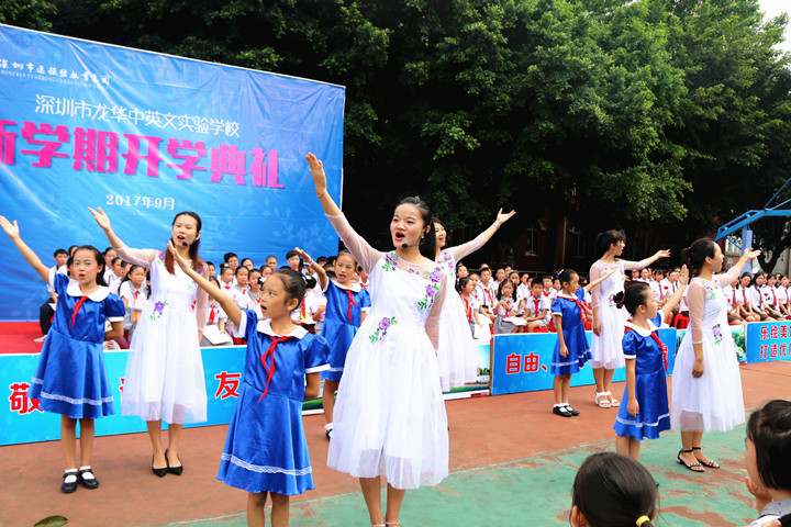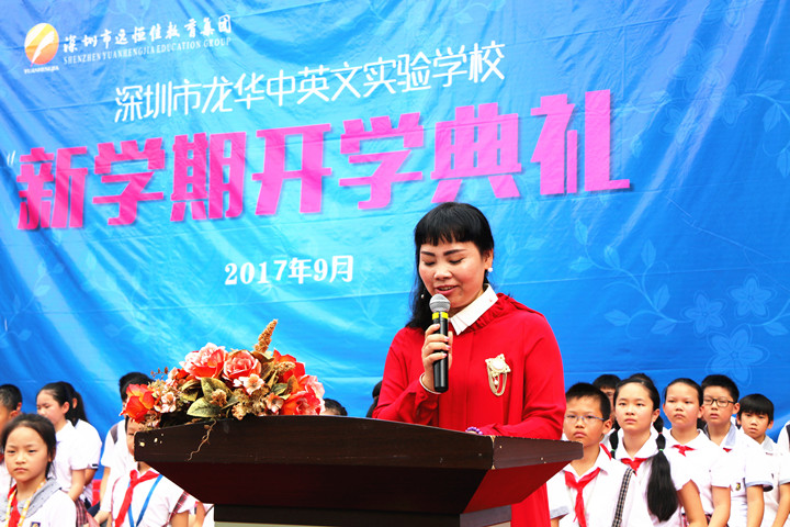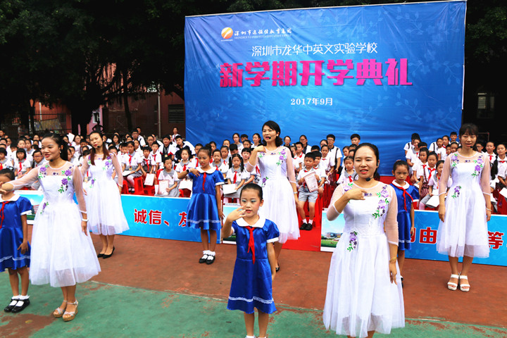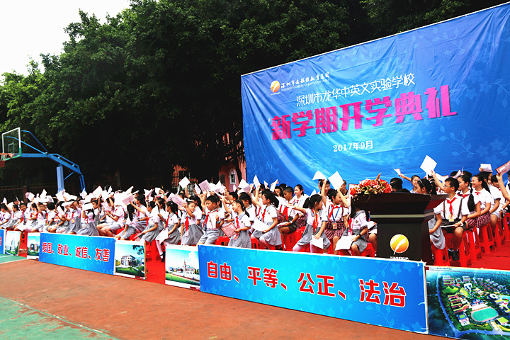 2017年9月6日上午,深圳市龍華中英文實驗學校在運動場舉行新學期開學典禮。開學典禮主要分為四個環節進行:升國旗儀式;校長致辭;教師、學生、家長代表激情演講;為上學期獲得“遠恒佳獎學金”的學生頒獎。