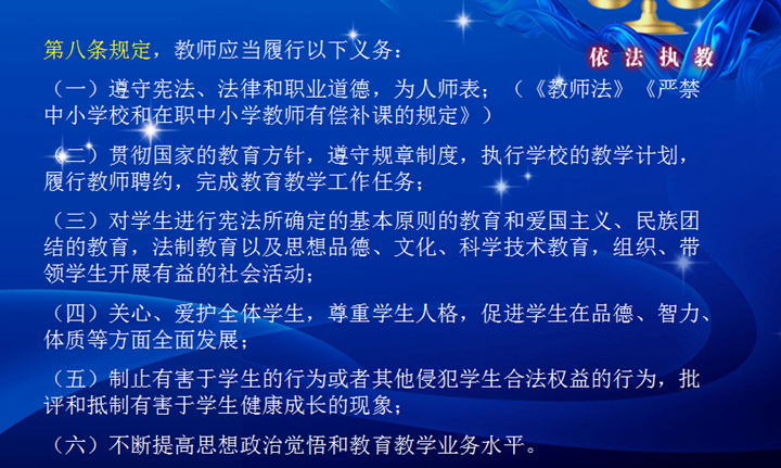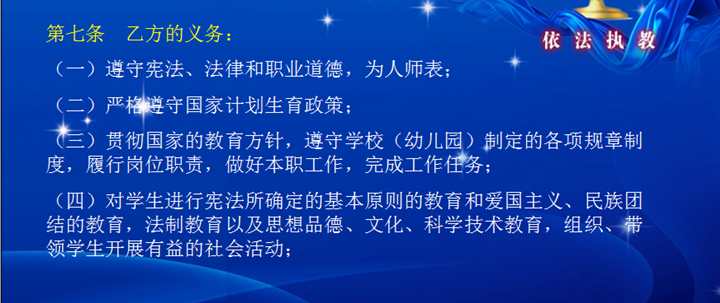 接著對(duì)新教師進(jìn)行了題為《依法執(zhí)教,規(guī)范施教,提高教師專(zhuān)業(yè)素質(zhì)》的法律法規(guī)培訓(xùn),在這一環(huán)節(jié),向新教師解讀了合同法、深圳市教師聘用合同書(shū)、中小學(xué)教師職業(yè)道德規(guī)范等法律法規(guī)文件的重點(diǎn)條款。特別是對(duì)集團(tuán)教師從教六項(xiàng)禁令做了較詳細(xì)的解讀,從“嚴(yán)禁違法違紀(jì)”、“嚴(yán)禁體罰或變相體罰學(xué)生”、“嚴(yán)禁以權(quán)謀私”、“嚴(yán)禁態(tài)度惡劣”、“嚴(yán)禁弄虛作假”、“嚴(yán)禁情緒化工作”六大方面20個(gè)條目上為教師依法執(zhí)教、規(guī)范從教提供了指引,為更好地做好教育教學(xué)工作提供了有力的保障。
