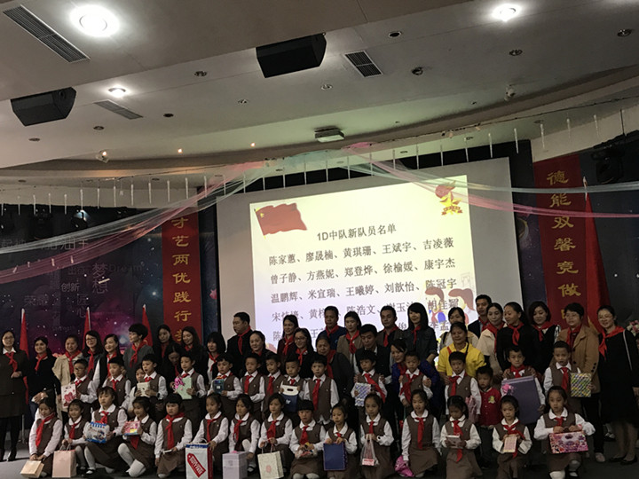 伴隨著嘹亮的隊歌,一年級279名新隊員被批準加入中國少年先鋒隊,成為一名光榮的少先隊員,在雄壯有力的出旗曲中,少先隊旗手與護旗手們邁著整齊的步伐,精神抖擻地進行著莊嚴的出旗儀式,少先隊入隊儀式由此拉開帷幕。