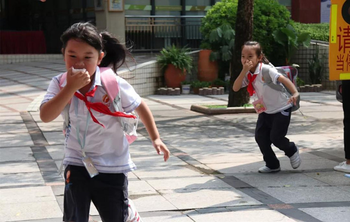 演練時,參演現場模擬校車起火,校車司機打開前門,接送老師打開逃生門,并指引學生疏散到安全地帶。接送老師第一時間清點人數,檢查學生有沒有人員“失聯”或“傷亡”。整個演練過程緊張有序,從開始疏散到全部安全撤離,只用時1分25秒。