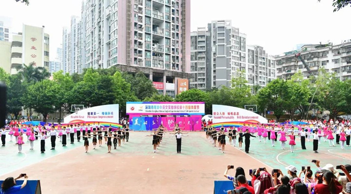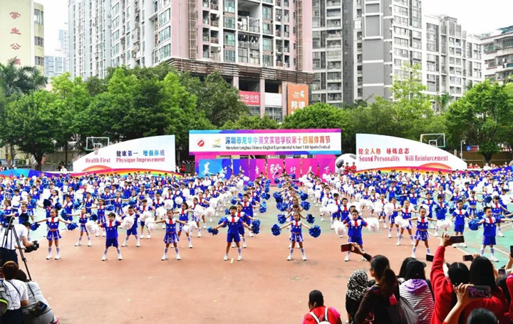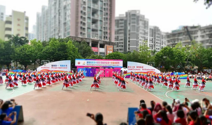 時間: 2019-01-03 作者:龍華中英文實驗學校 閱讀次數: 30422018年12月5日上午,深圳市龍華中英文實驗學校運動場上彩旗飄舞,樂聲悠揚,充滿勃勃生機。學校第14屆體育節在這“健康、成長、快樂”的主旋律中隆重開幕。參加本次活動的有區體育教研員隋海林老師,集團研究院常務副院長、總校校長畢國軍博士,結對學校龍華中學、新華中學有關領導,駐區有關單位領導,集團各有關部門、學校、幼兒園領導,以及各年級學生家長。