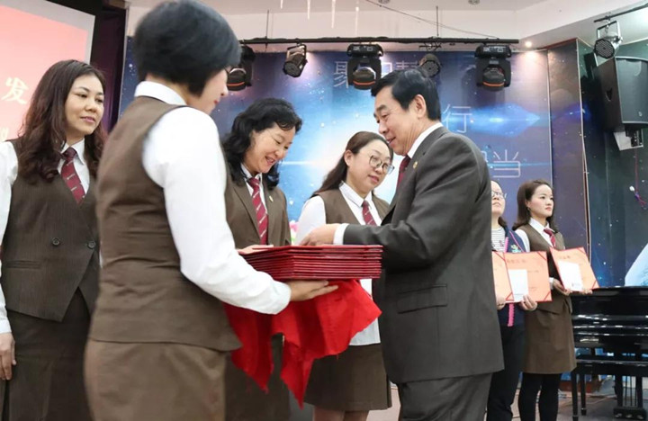 全國名校長、特級教師、學校卜祥林校長為優秀教職工頒獎