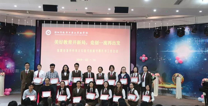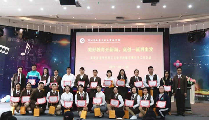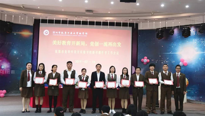 一年之計在于春,一日之計在于晨。深圳市龍華中英文實驗學校2019春開學季準備工作正緊鑼密鼓地進行著。2019年02月14日伊始,學校干部、教職工已經著手準備新學期各項工作,召開了新學期工作研討會、全體教職工大會(并頒發“提質增效獎”、“優秀教育教學成果獎”等四個獎項獎勵優秀教職工)、新教師培訓、全校衛生大掃除等,努力為孩子們提供一個嶄新的學習環境。