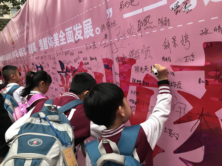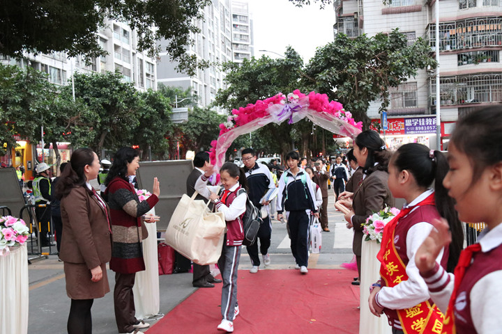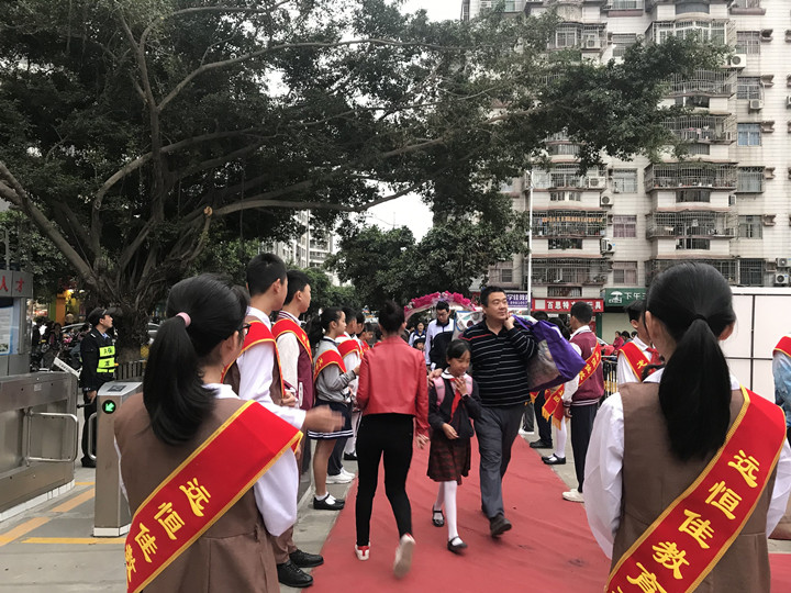 時(shí)間: 2019-02-19 作者:龍華中英文實(shí)驗(yàn)學(xué)校 閱讀次數(shù): 3483千里之行,始于足下。2019年02月18日,深圳市龍華中英文實(shí)驗(yàn)學(xué)校迎來一場別致的學(xué)生歡迎禮,引得師生、家長嘖嘖稱贊。嘹亮的歌曲,鮮紅的地毯,炫目的光榮榜,創(chuàng)意的簽名墻等筑成一道道靚麗的風(fēng)景,喜迎同學(xué)們到校。