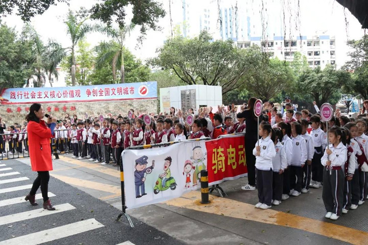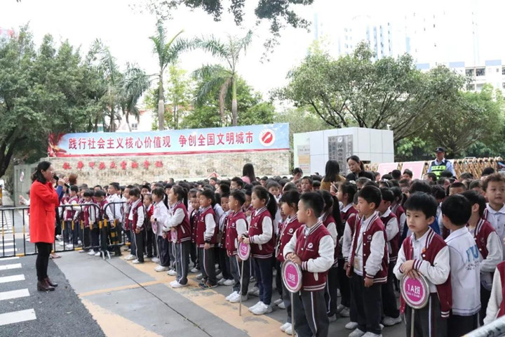 一年級(jí)各班同學(xué)在班主任的帶領(lǐng)下開(kāi)展交通安全活動(dòng)