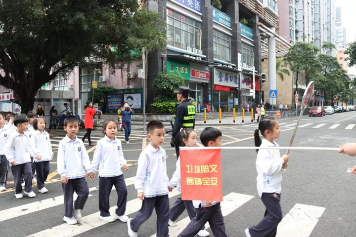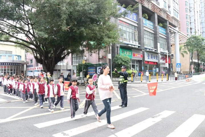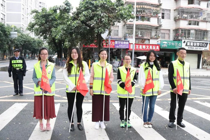 接著,一年級(jí)六名副班主任身穿家長(zhǎng)義工服,手持指揮旗,分別在校門口六個(gè)崗位做好護(hù)航指揮。活動(dòng)通過(guò)學(xué)生親身體驗(yàn),極大地增強(qiáng)了交通安全意識(shí),提高了同學(xué)們過(guò)馬路的自護(hù)能力。